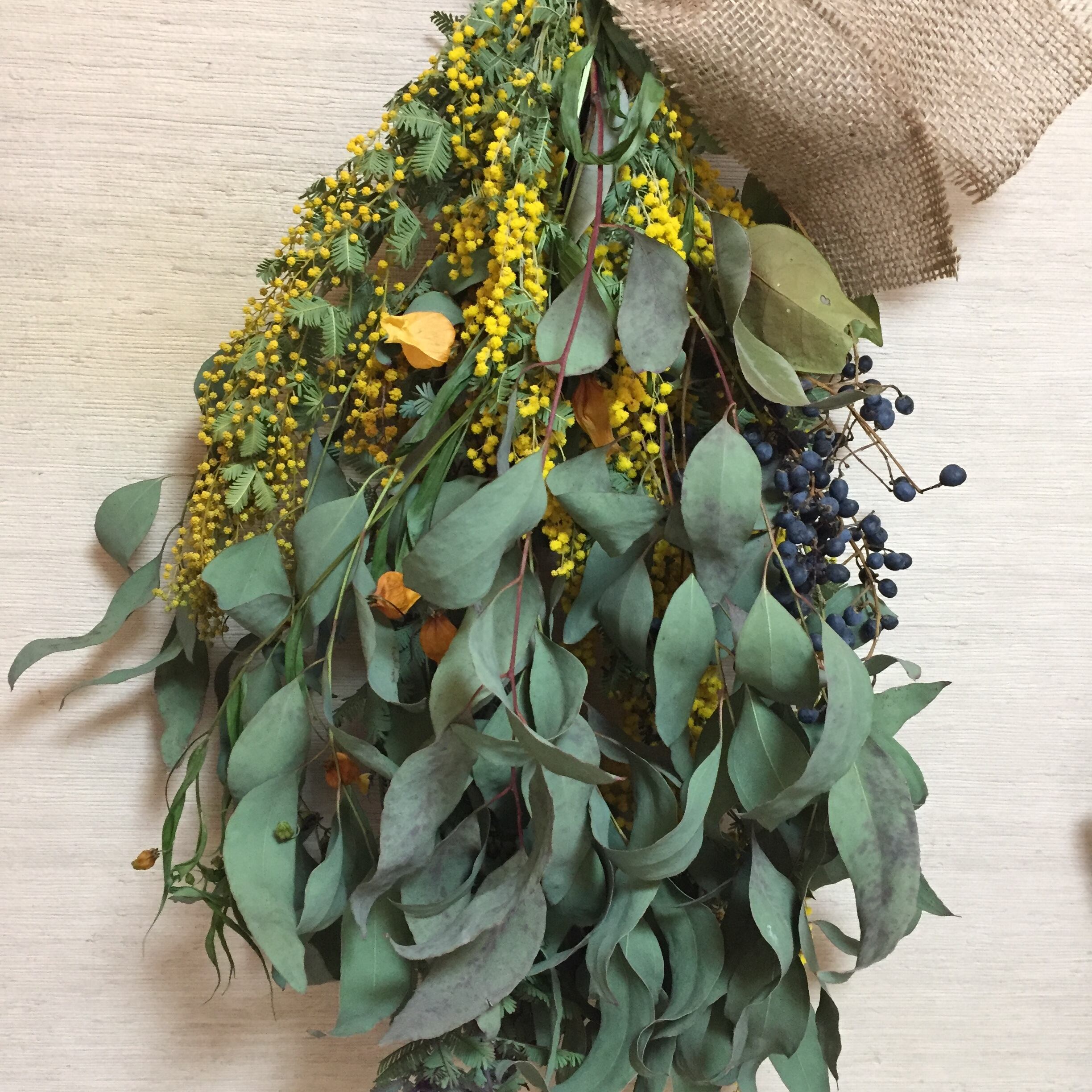 展示のみ たっぷりのユーカリとミモザの大きなスワッグ サンダーソニア